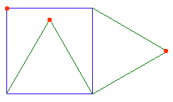 deux triangles équilatéraux, l'un dans le carré, l'autre à l'extérieur. Chacun