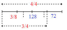 3x/8 + 128 + 72 = x ⇔ x - 3x/8 = 200 ⇔ 5x/8 = 200 ⇔ 5x = 1600 ⇔ x = 1600 ÷ 5 = 320