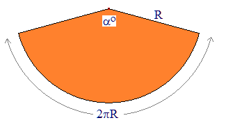 A droite est représenté un secteur de rayon R, d'angle d'ouverture. R étant donné (4dm), il s'agit de déterminer α ou r, comme on le voit sur le schéma de droite, afin que le volume d'un des cônes constituant la bouée soit maximal.