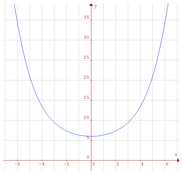 Par suite x(cos x + 2) - 3sin x ≥ 0 pour tout x de R+. La fonction dérivée de f est donc positive sur R+ : c'est dire que f est strictement croissante sur cet intervalle. On obtient la courbe restreinte à R+ que l'on complète, du fait de la parité, par symétrie par rapport à (Oy) en retrouvant ainsi les conclusions de la 1ère partie.