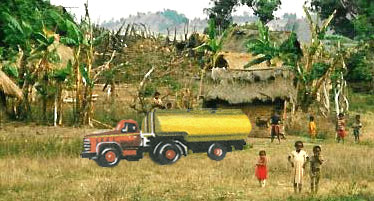 Un camion citerne apporte de l'eau potable dans un village de la brousse africaine. La citerne est pleine; sa capacité est de 4000 litres. Un compteur permet de connaître la quantité d'eau distribuée. Les habitants du village remplissent, chacun leur tour, deux seaux d'eau de 10 litres.