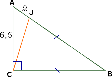 Or, AB = BJ + JA = x + 2 , CA = 6,5 et CB = x, donc :