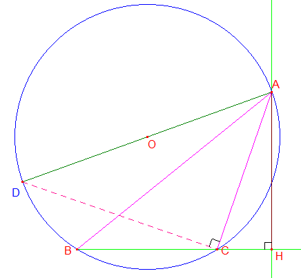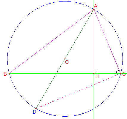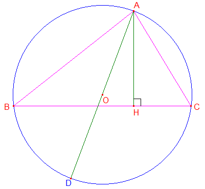 On considère un triangle ABC dont on a tracé la hauteur [AH], H intérieur à [BC]. On trace son cercle circonscrit et le diamètre [AD] passant par A.